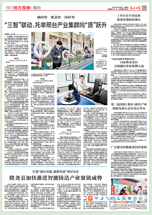 质量创新,是产业转型升级的核心引擎。邢台市拥有44个县域特色产业集群,撑起县域经济高质量发展的“四梁八柱”。如何推动产业集群从“量”的积累迈向“质”的跃升?