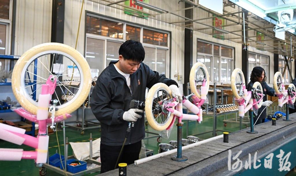 10月20日,在萌兽自行车(河北)有限公司,工人正在组装自行车。河北日报、河北日报客户端记者赵永辉摄