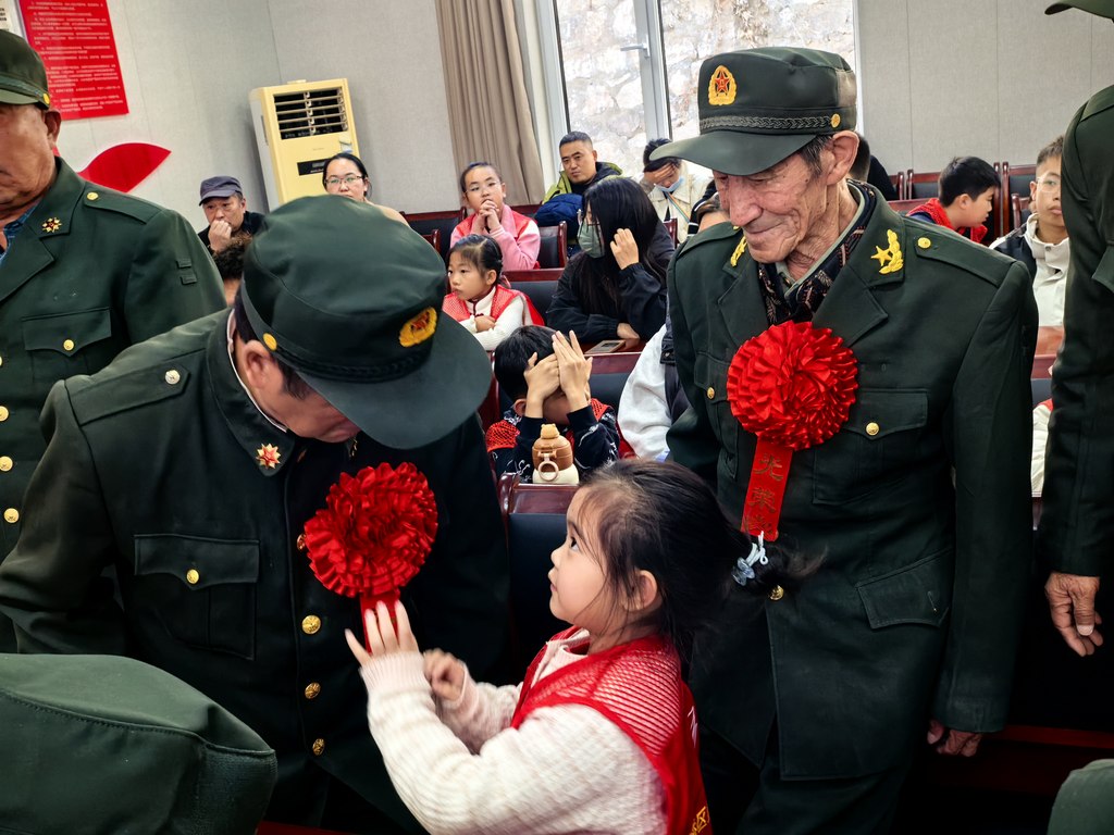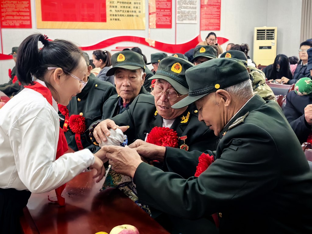 活动伊始,小志愿者们为每位老战士郑重献上鲜艳的大红花,稚嫩的军礼与老战士们欣慰的笑容交织,构成现场最动人的开篇画面。