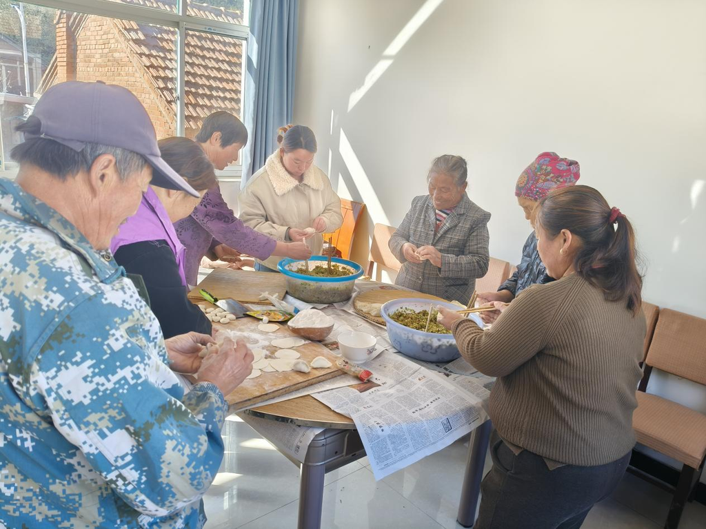 道虎沟乡高创沟村幸福互助院内,大家一起包饺子。