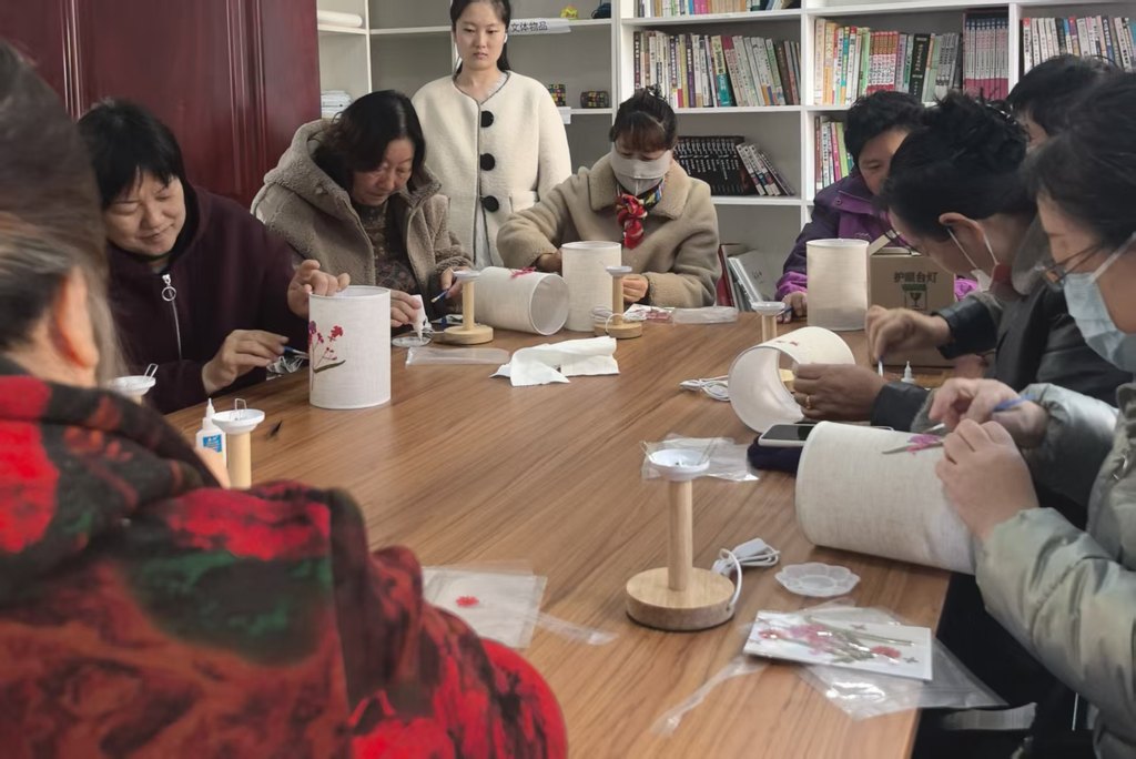 压花台灯手工制作活动现场。