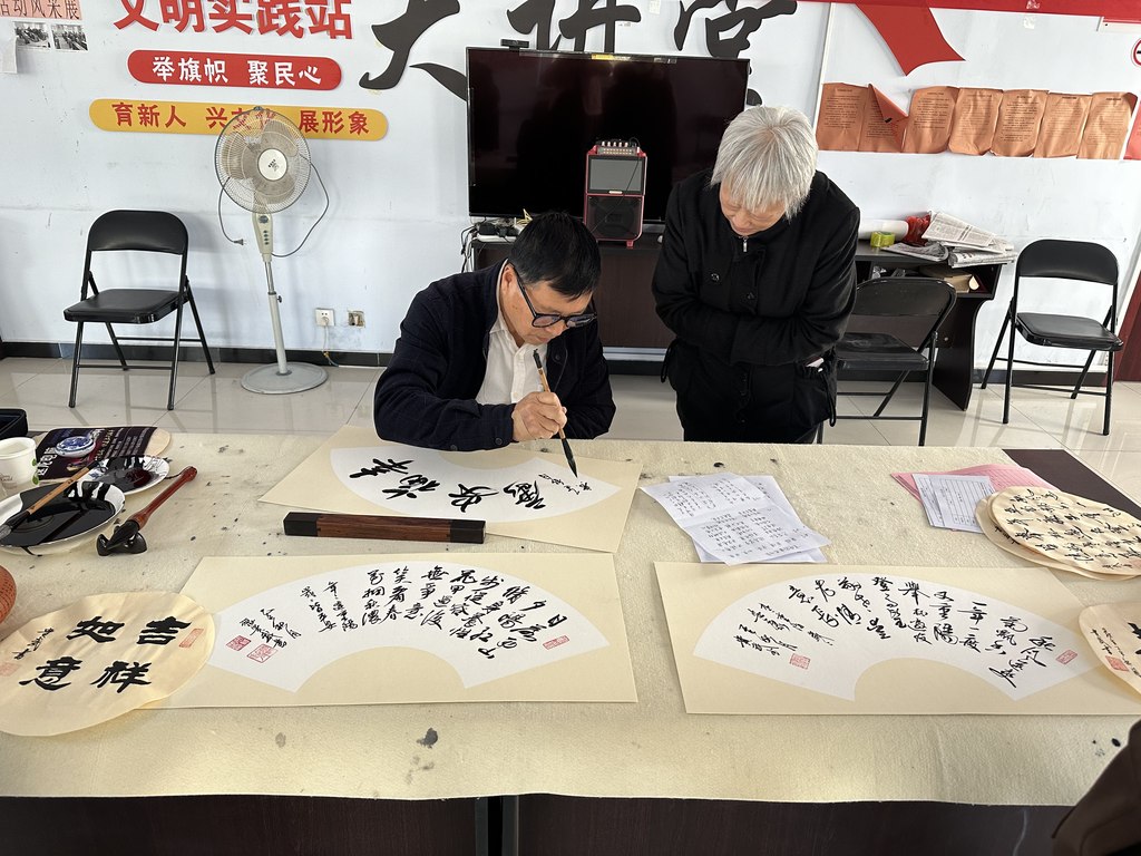 除了贴心的健康服务,各社区还精心设计了丰富的趣味互动活动,让老人们在玩乐中感受节日的快乐。在滨河社区等活动现场,“挑战数数字”“反向口令”等趣味游戏引发阵阵欢笑;书法爱好者还在社区开展书法活动,挥毫泼墨写下“福寿康宁”“重阳安康” 等吉祥话语,赠予参与活动的老人,将文化祝福融入笔墨之中。