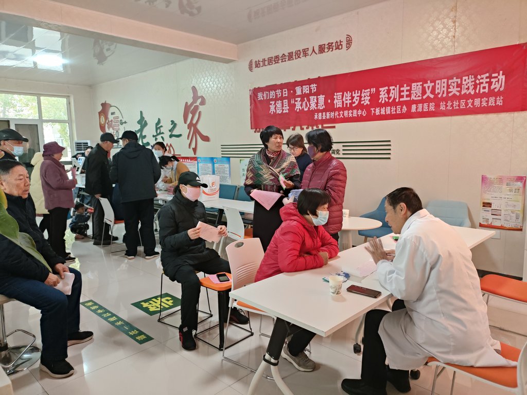活动期间,承德县新时代文明实践中心联合县卫健局,统筹承德县医院、县中医院、承德康源医院优质医疗资源,在多个社区与区域同步开展义诊服务,将专业医疗保障送到老人身边。
