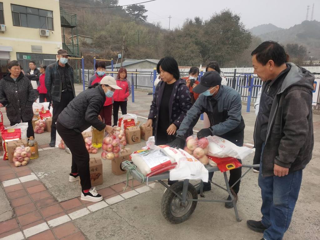 图为为老人发放生活物资。