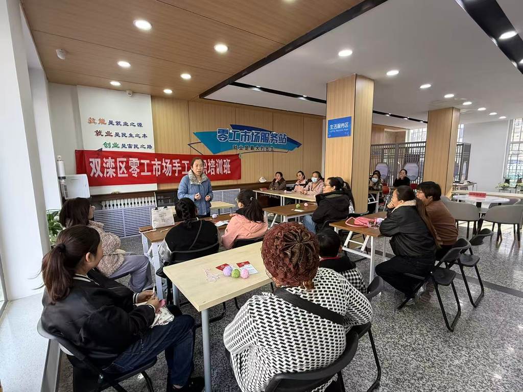 培训现场,学员们专注学习,互动交流,一针一线都编织着就业的希望。家住锦绣城的学员刘敬卫,在此次学习中结识了一群志同道合的朋友,大家一起研究针法、交流创作灵感,并且在零工市场搭建的桥梁下,接到了意向订单。