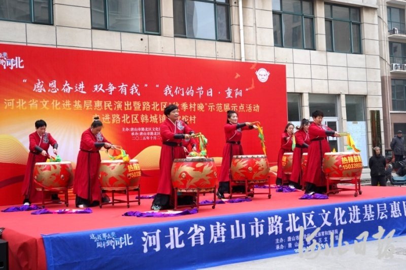 本次活动由路北区文化体育和旅游局主办,路北区文化馆承办。活动现场,东欢坨村的村民们早早聚集在了文化广场。由本村村民自发组建的秧歌队率先登场,用欢快的表演为演出拉开了序幕。队员们身着艳丽服饰,踏着欢快鼓点扭起秧歌,质朴热烈的舞姿瞬间点燃现场气氛。