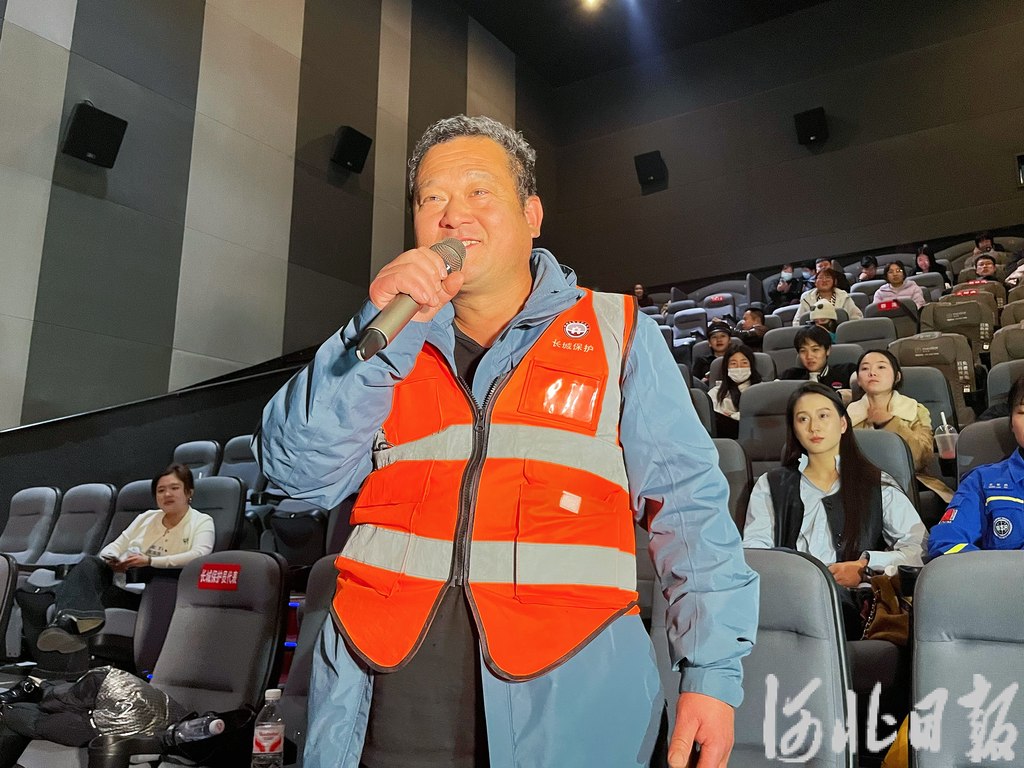 首映式上,迁安长城保护员与电影主创团队互动交流。河北日报记者师源摄