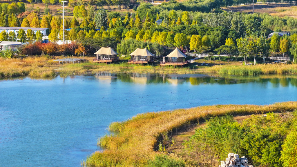 11月1日,无人机拍摄的宁晋县凤鸣湖公园。