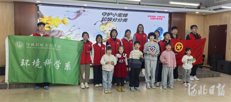 河北日报客户端讯(贲志新、张岩、武鹏娟)11月1日,秦皇岛市北戴河图书馆报告厅内童趣盎然。河北环境工程学院环境科学系志愿者团队带来“守护小蜜蜂 垃圾分分类”科普课堂活动,通过互动游戏,让孩子们解锁环保知识,埋下守护生态的种子。