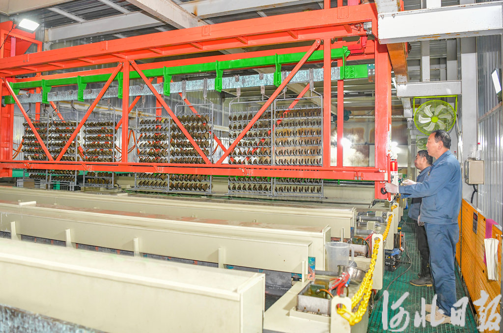 10月31日,在河北华丰工业集团有限公司金属表面处理共享车间,工人正在加工汽车零部件。河北日报记者 徐华摄