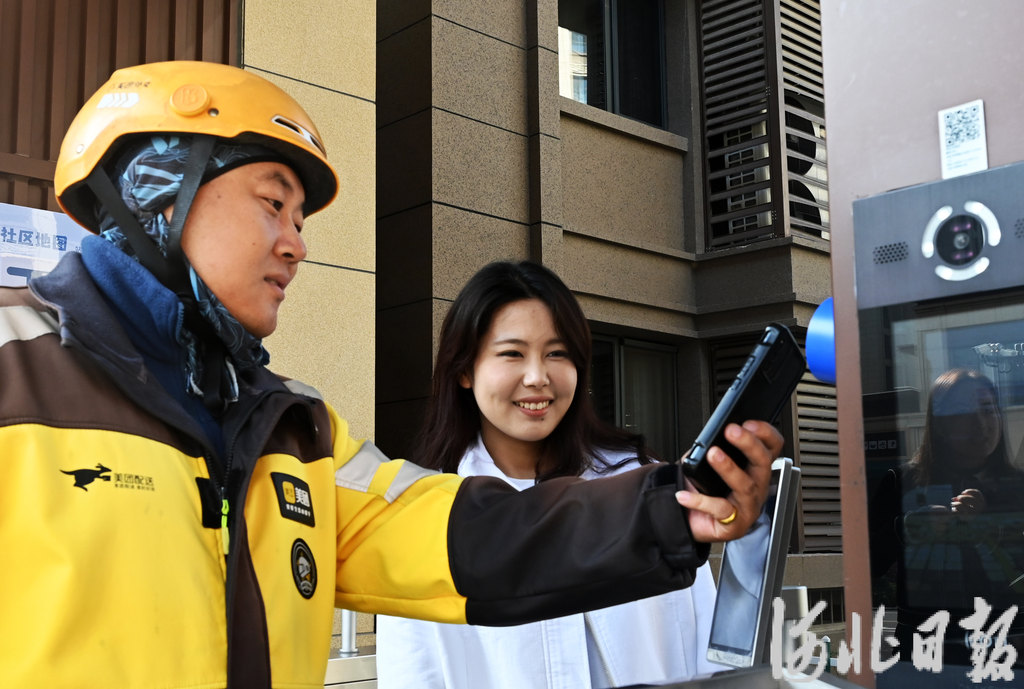 “您的订单即将超时,请尽快送达……”10月13日上午10时27分,外卖小哥梅予冬带着顾客点的奶茶来到雄安新区文华社区芳菲园小区。虽然时间紧迫,他却不慌不忙。原来,小区门口装了新设备——“碰一碰”数字门禁系统,这让他的送餐“最后一百米”变得畅通无阻。