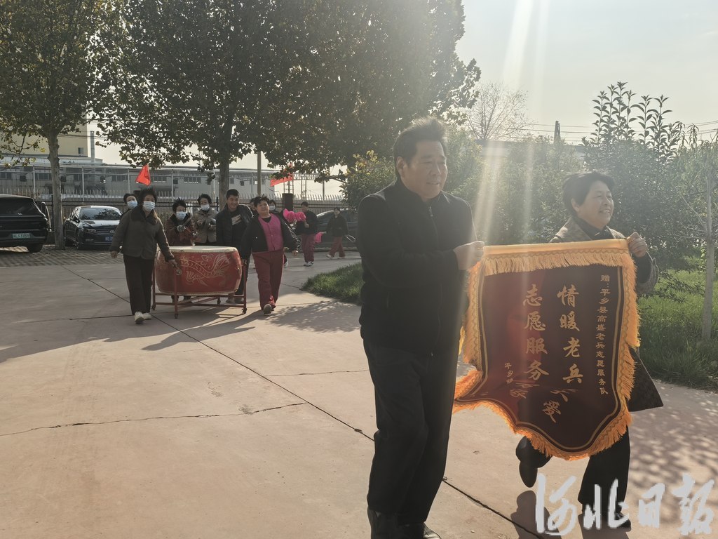河北日报客户端讯(王雪峰、杨晓波)近日,平乡县齐庄村村民们精心制作了一面锦旗,敲锣打鼓送给平乡高盛老兵志愿服务队,感谢老兵们不辞辛苦进村上门提供志愿服务,对老兵们退伍不褪色、服务显担当的可贵精神赞不绝口。