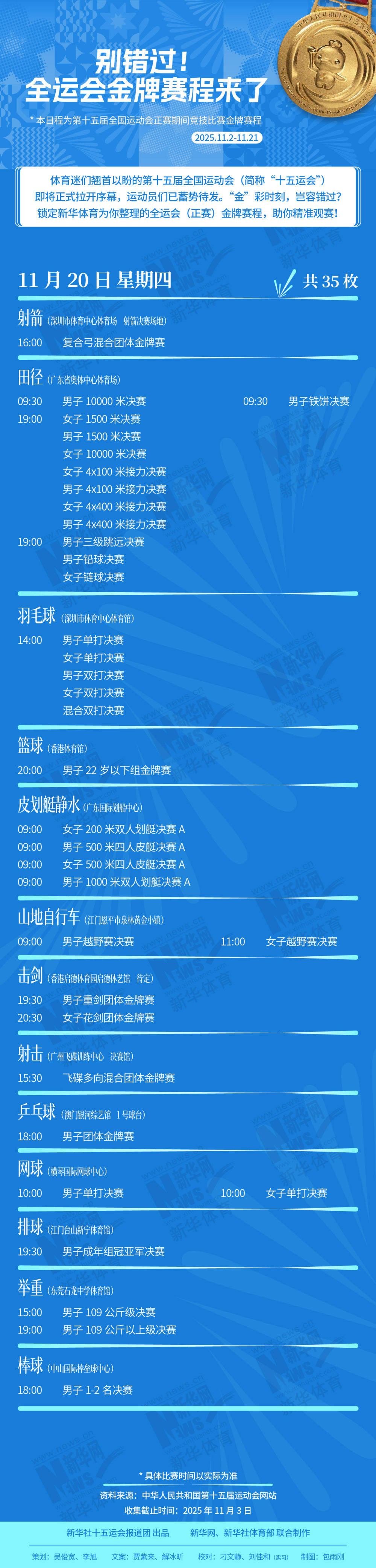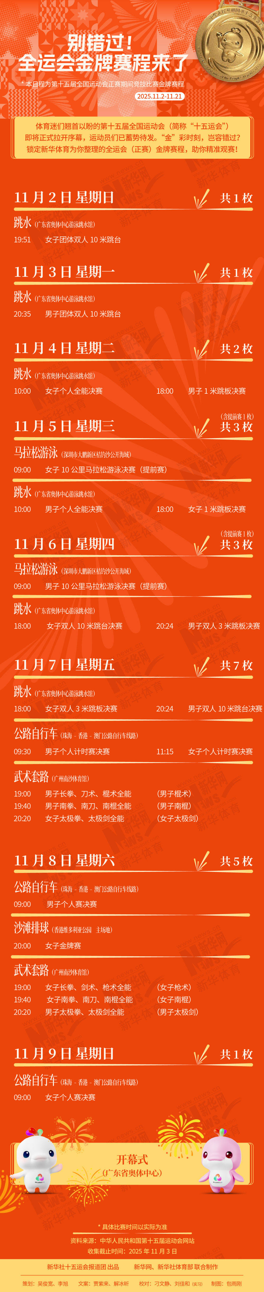体育迷们翘首以盼的第十五届全国运动会(简称“十五运会”)即将正式拉开序幕,运动员们已蓄势待发。“金”彩时刻,岂容错过?锁定全运会(正赛)金牌赛程,助你精准观赛!
