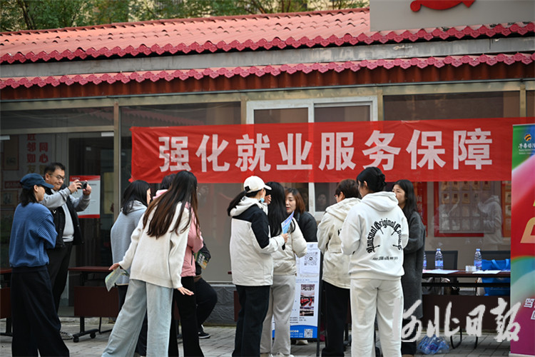 图为求职者在招聘会上了解岗位信息。红旗街道供图