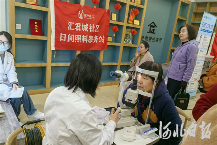河北日报客户端讯(付杉)11月4日,石家庄市新华区西三庄街道总工会、汇君城社区居委会联合家外家养老服务中心,开展“关爱眼健康 光明进社区”免费眼科检查公益活动。