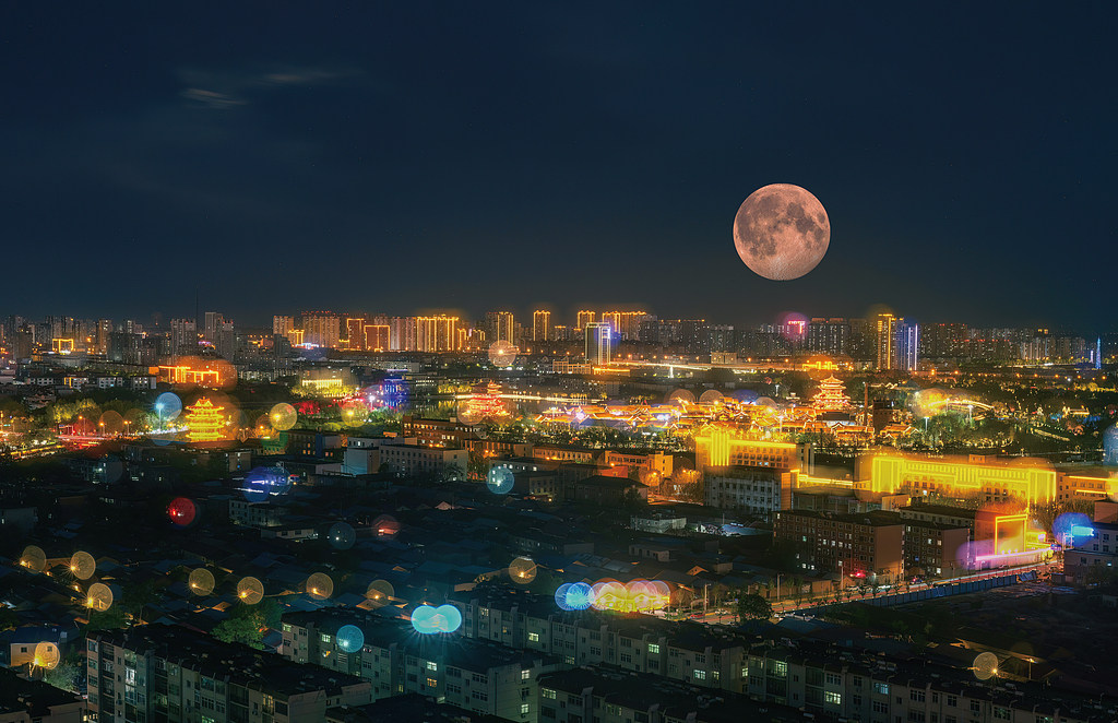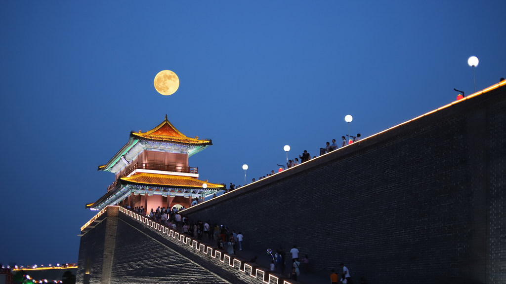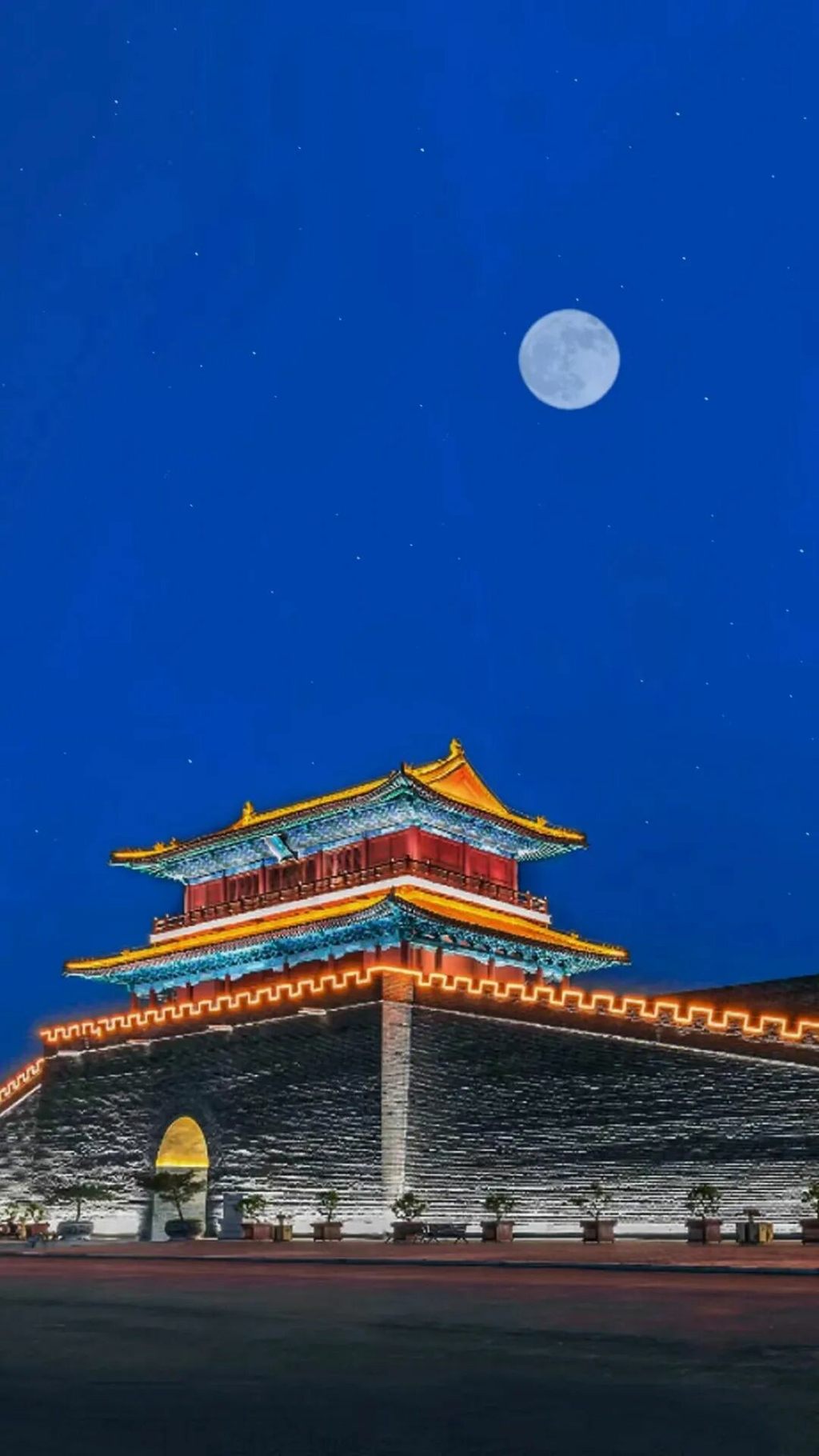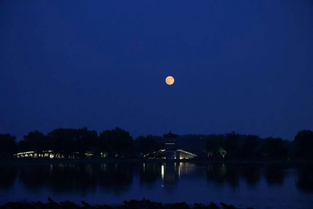 2025年10月7日,北京颐和园,古建筑与满月同框。
