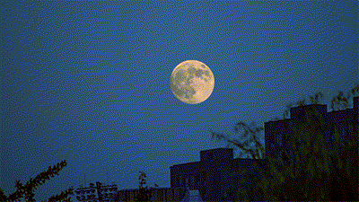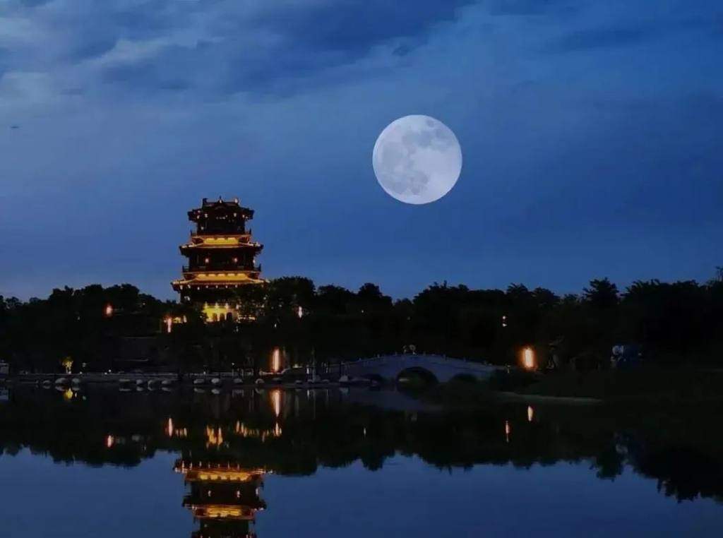 2022年7月13日,在北京西城区北海公园拍摄的年度最大满月。(王俊峰摄)