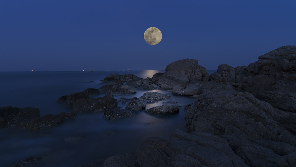 月光映照下的北戴河海滨礁石。图自视觉中国