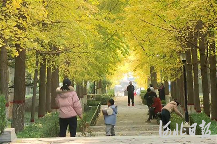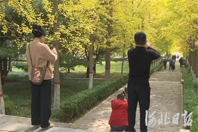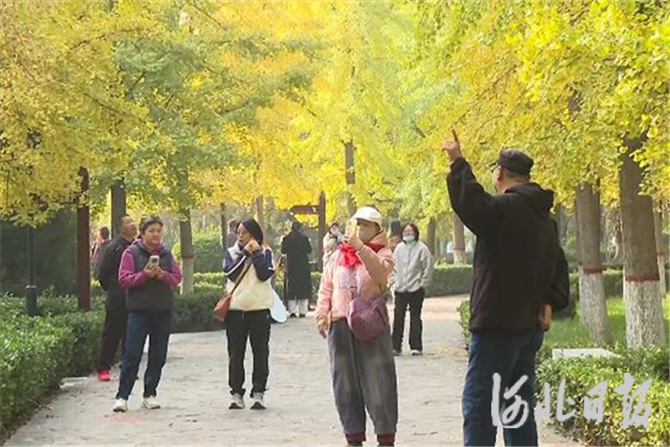 河北日报客户端讯(刘露、刘蓉菲)近日,石家庄市鹿泉区海山公园内400余株银杏树进入最佳观赏期,满树金黄的叶片将公园装扮成一片金色海洋,吸引众多市民和游客前来打卡。