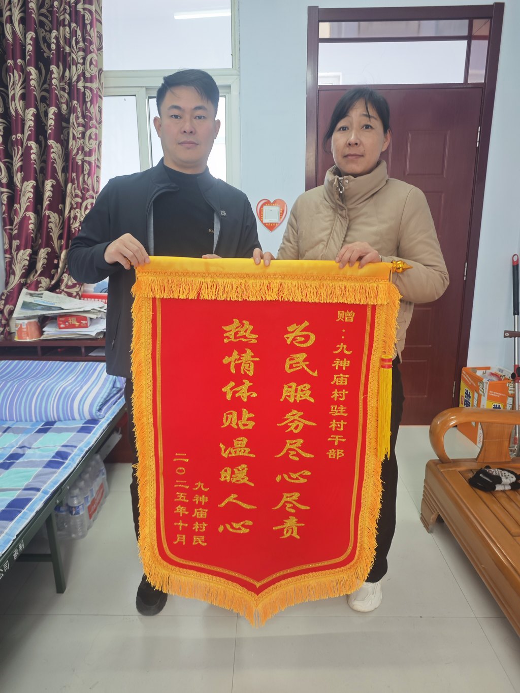 河北日报客户端讯(梁志青、钟汉泽)近日,滦平县付营子镇九神庙村将一面锦旗送到招商银行股份有限公司石家庄分行驻该村工作队队长史南南手中。