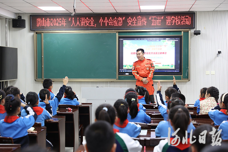 河北日报客户端讯(唐长利)近日,唐山市应急管理局组织安全宣传志愿者走进路北区扶轮小学,开展地震和火灾逃生能力应急知识宣传活动,扎实推进安全宣传“五进”工作,营造“人人讲安全,个个会应急”的浓厚氛围,切实增强校园师生安全防范意识和应急逃生能力。
