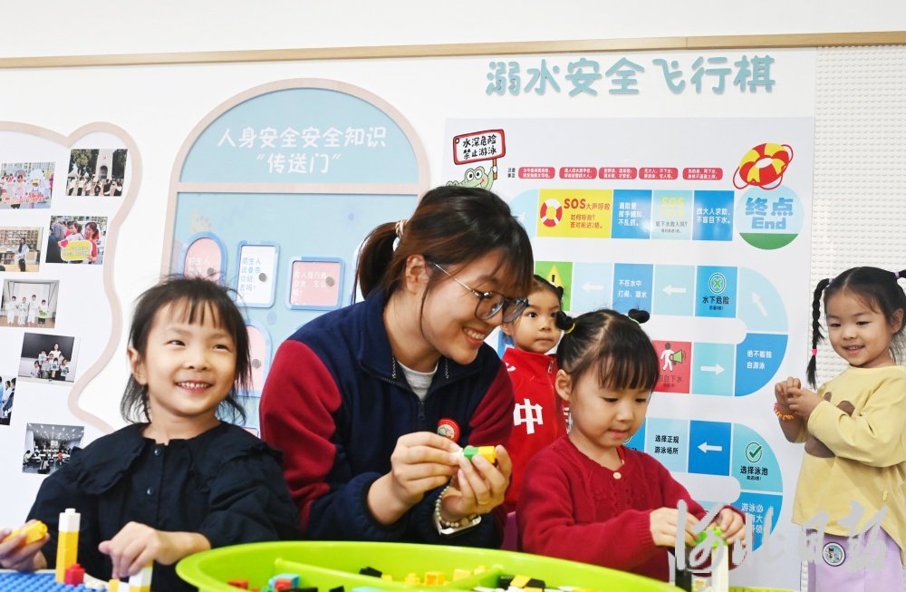 一旁,中班老师刘玲玲一边体验游戏,一边认真记录。“最近总听家长说孩子们特别喜欢来这里,我也专门来看看。把安全教育融入游戏,确实非常吸引孩子。”