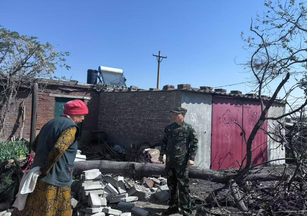 2025年4月,张鹏在强台风造成破坏的信都区红星社区现场开展抢险工作。