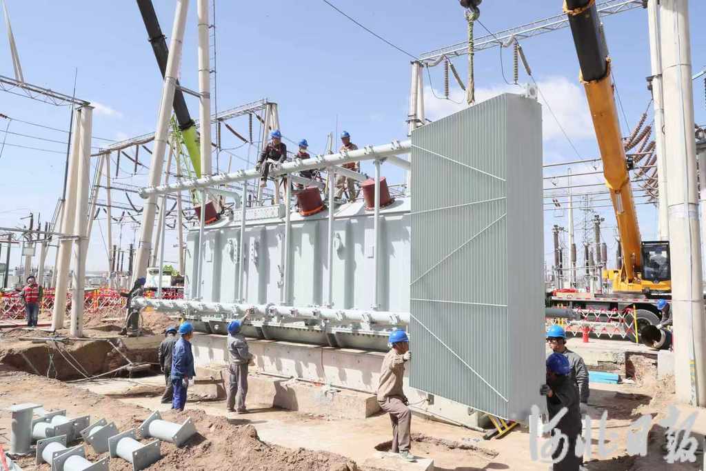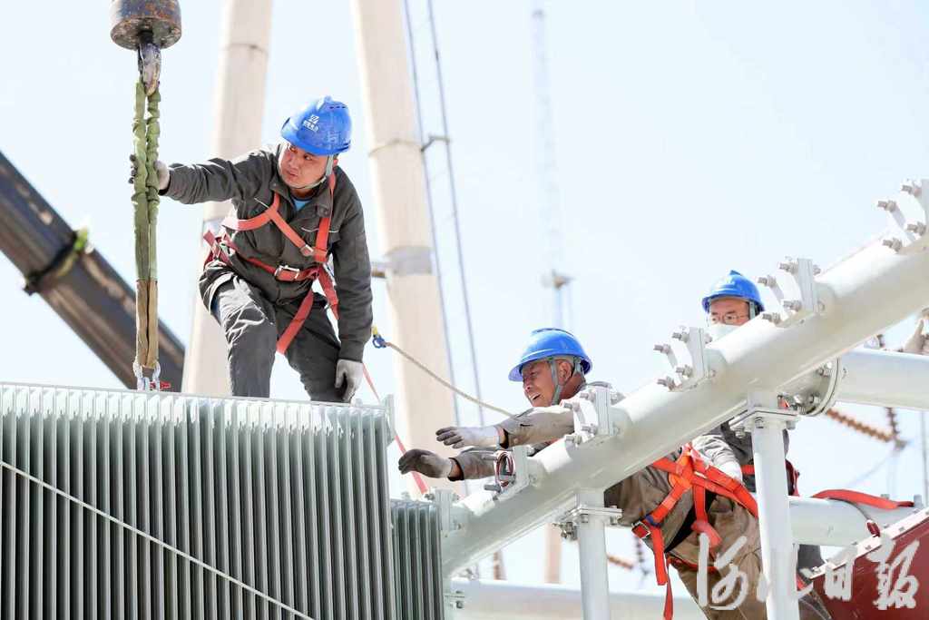 国网张家口供电公司作业人员在张北220千伏变电站安装变压器。孙孝庆摄