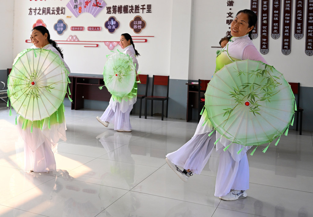 10月24日,定州市银龄之家日间照料中心的老人在排练舞蹈。