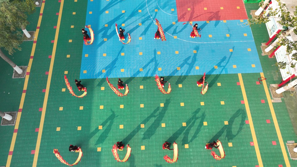 11月4日,平乡县北牌小学舞龙社团的学生在练习舞龙。