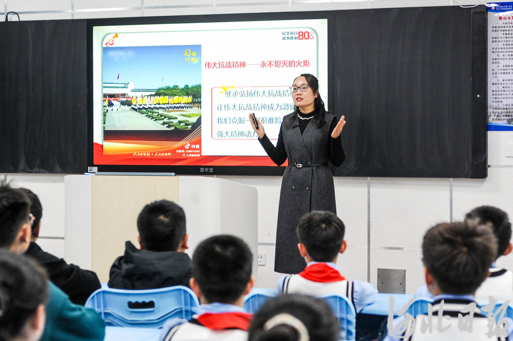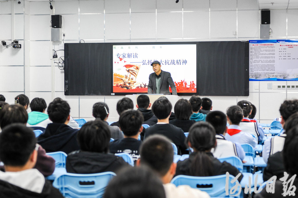 河北日报客户端讯(赵红光、张永文)11月5日下午,一场以“历史的回响与时代的使命——弘扬伟大抗战精神”为主题的思政课在唐山市第十中学启智楼录播教室开讲。来自华北理工大学、唐山师范学院、唐山市第十中学、路北区五十二中学、边各寨小学五所学校的师生代表100多人共同参与了这堂历时40分钟、形式生动的爱国主义教育课。