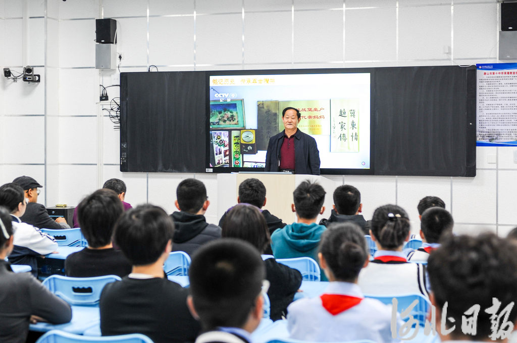 图为抗战堡垒户后人赵春胜先生在唐山市第十中学讲思政课。梁宇摄