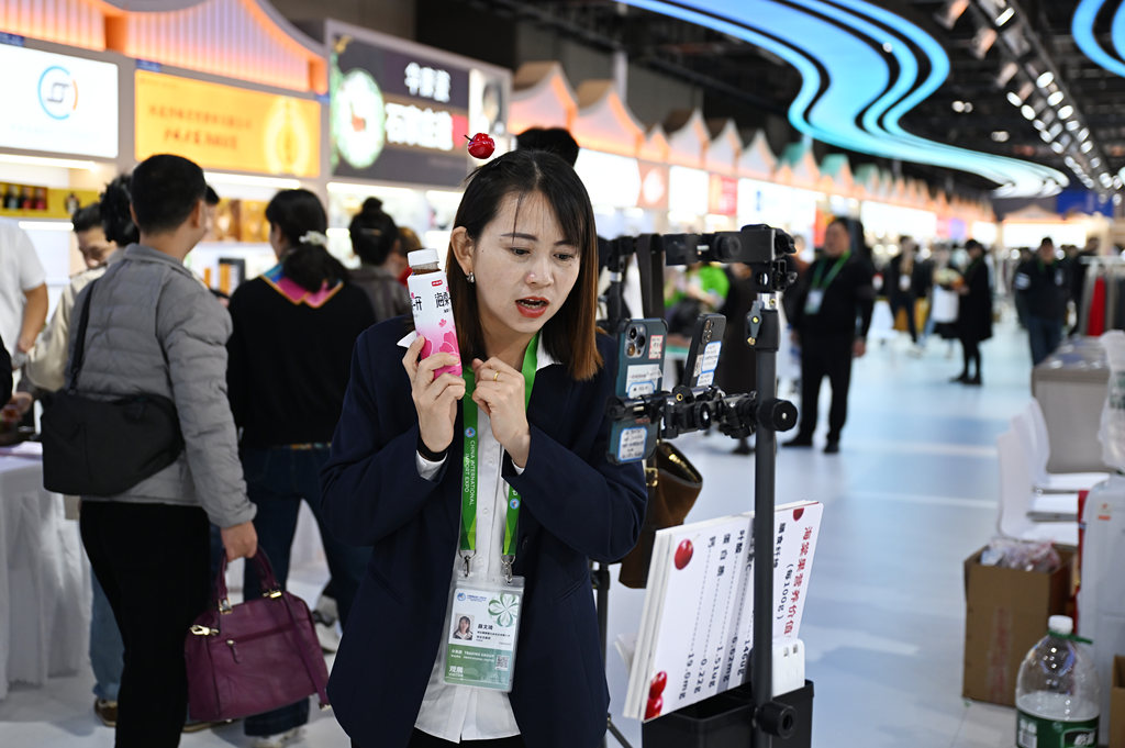 11月6日,第八届中国国际进口博览会河北参展商通过直播推广产品。
