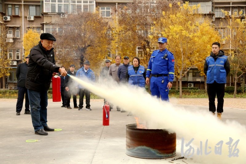 ——红十字蓝天救援队队员讲解了灭火器使用方法及注意事项,并指导居民现场实操,提升居民面对火灾的自救能力;