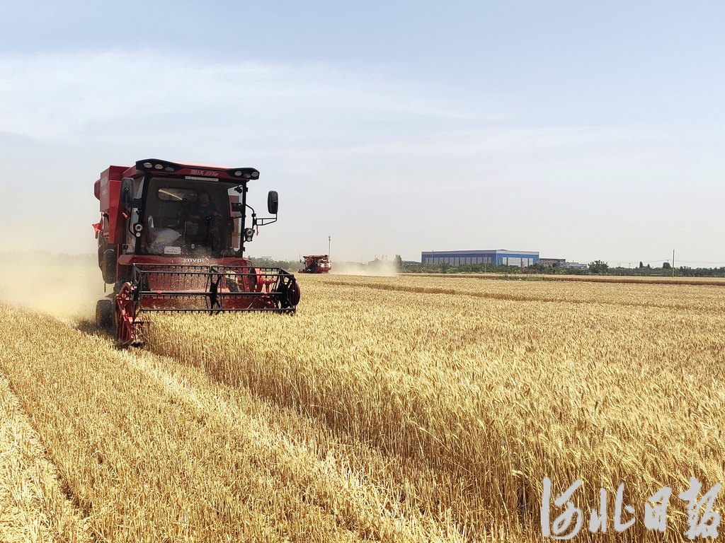6月9日,在邯郸市永年区刘营镇陈刘营村的麦田里,收割机正收获小麦。河北日报记者郝东伟摄(资料片)