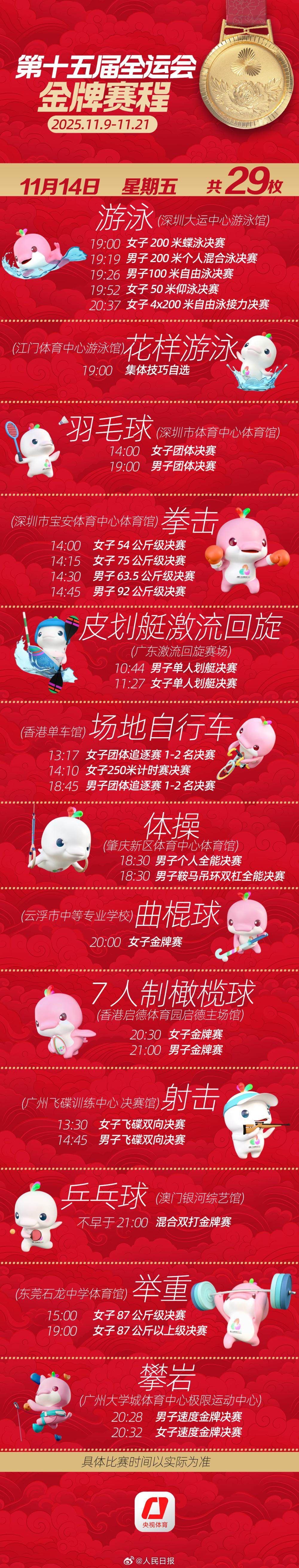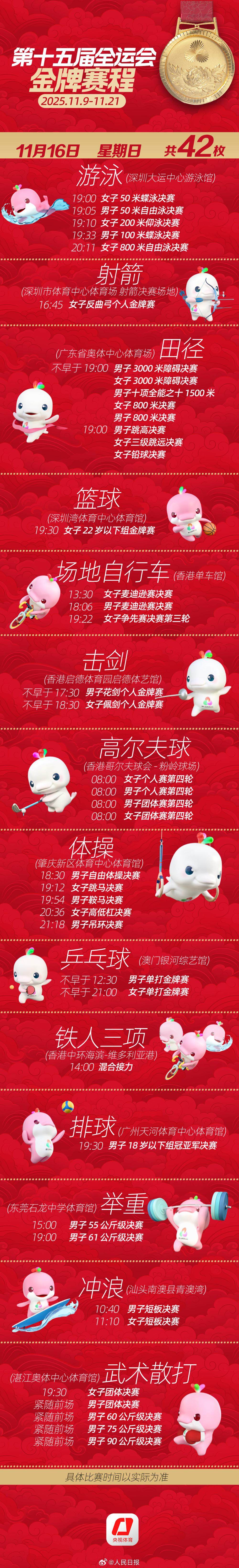 第十五届全运会开幕式将于明日举行。收藏十五运会金牌赛程,一起看全运会。