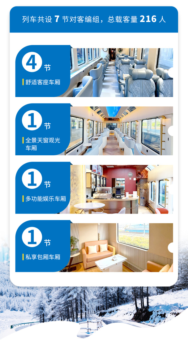 坐着观光列车去滑雪超惬意~