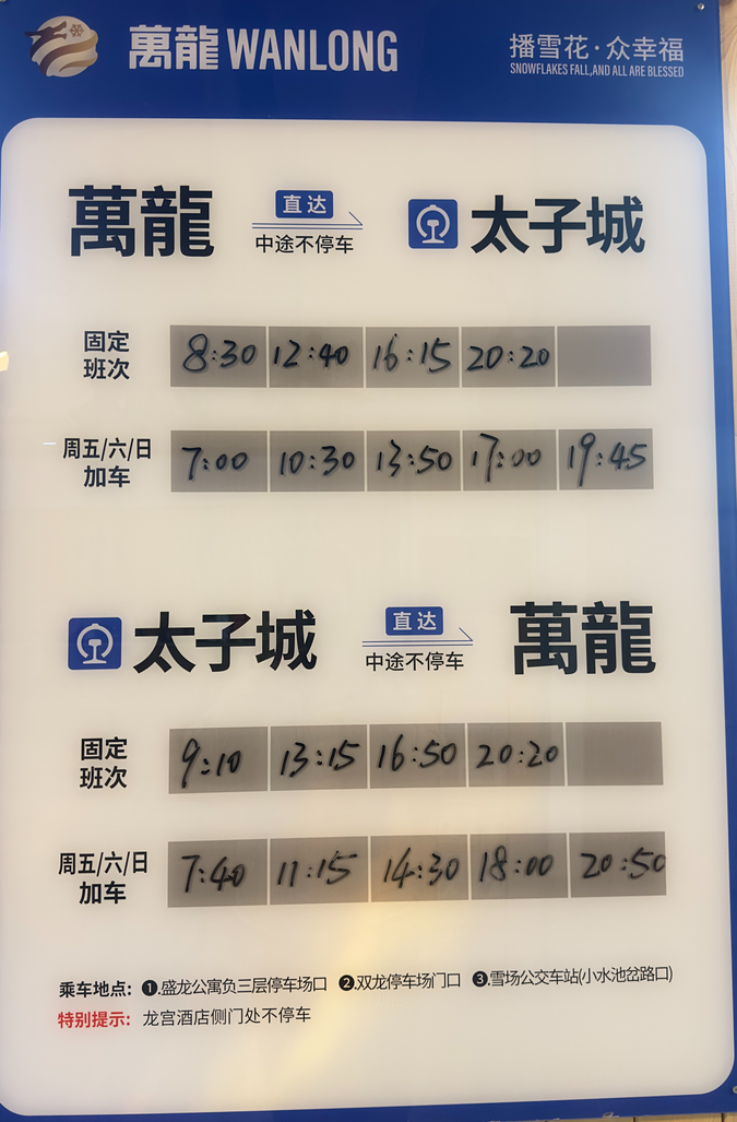 直达各大雪场的直通巴士