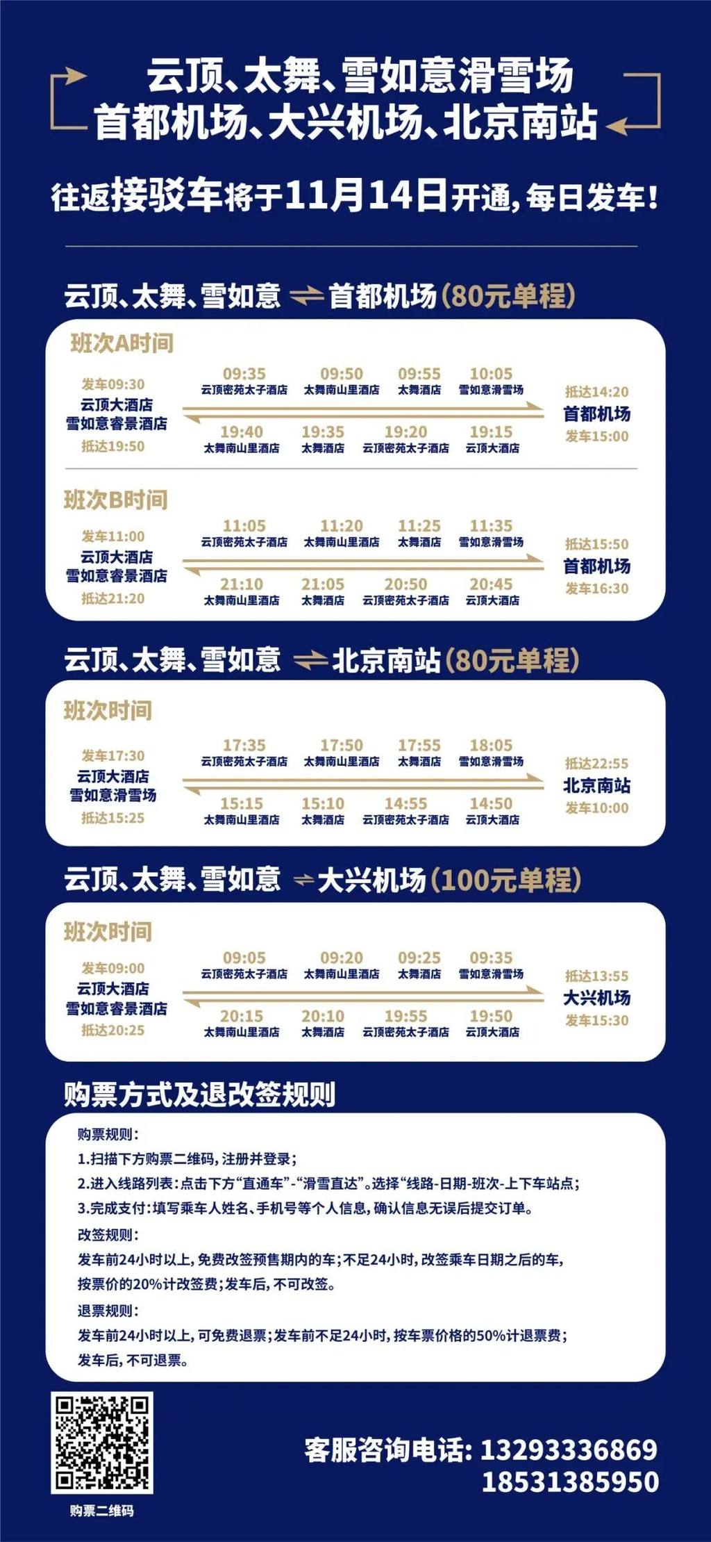 核心区方向(云顶、太舞、雪如意)两条线路