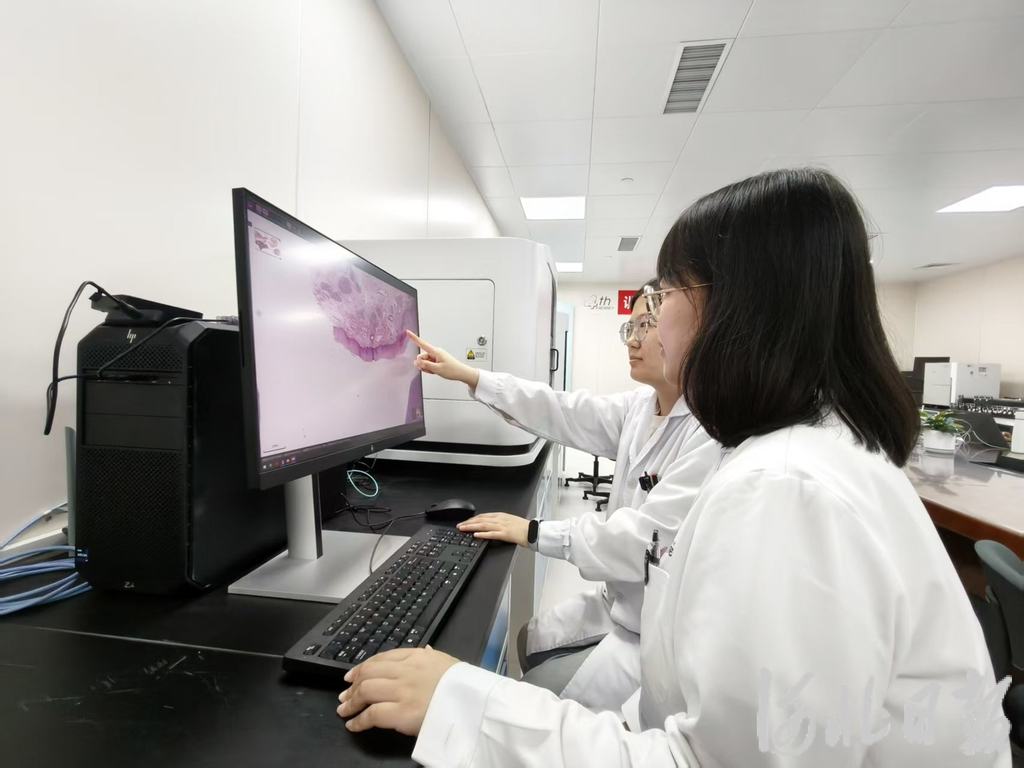 河北医科大学第四医院病理科医生正借助“智阅”肿瘤病理诊断大模型进行病理诊断。河北日报资料片