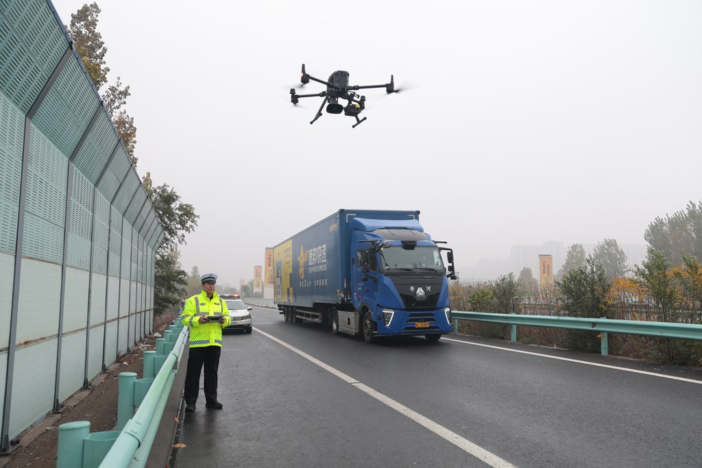 11月6日上午,河北高速交警六支队交警操作无人机在京港澳高速邯郸段巡航作业。燕赵都市报记者 程军摄