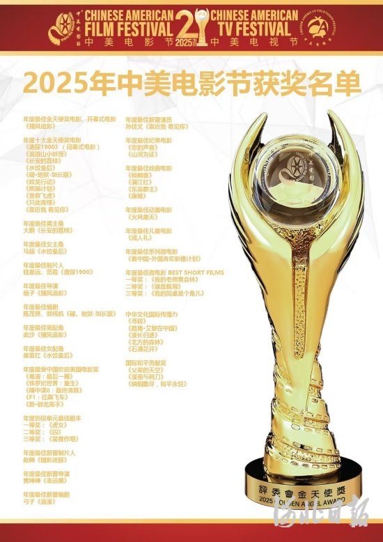 图为2025年第21届中美电影节获奖名单。中共迁安市委宣传部供图