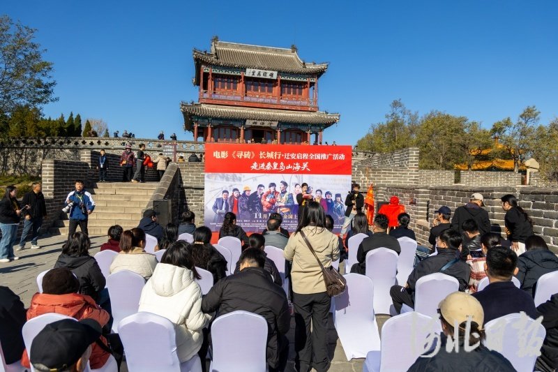 图为11月9日,电影《寻砖》长城行·迁安启程全国推广活动首站在河北秦皇岛市山海关成功举办。中共迁安市委宣传部供图