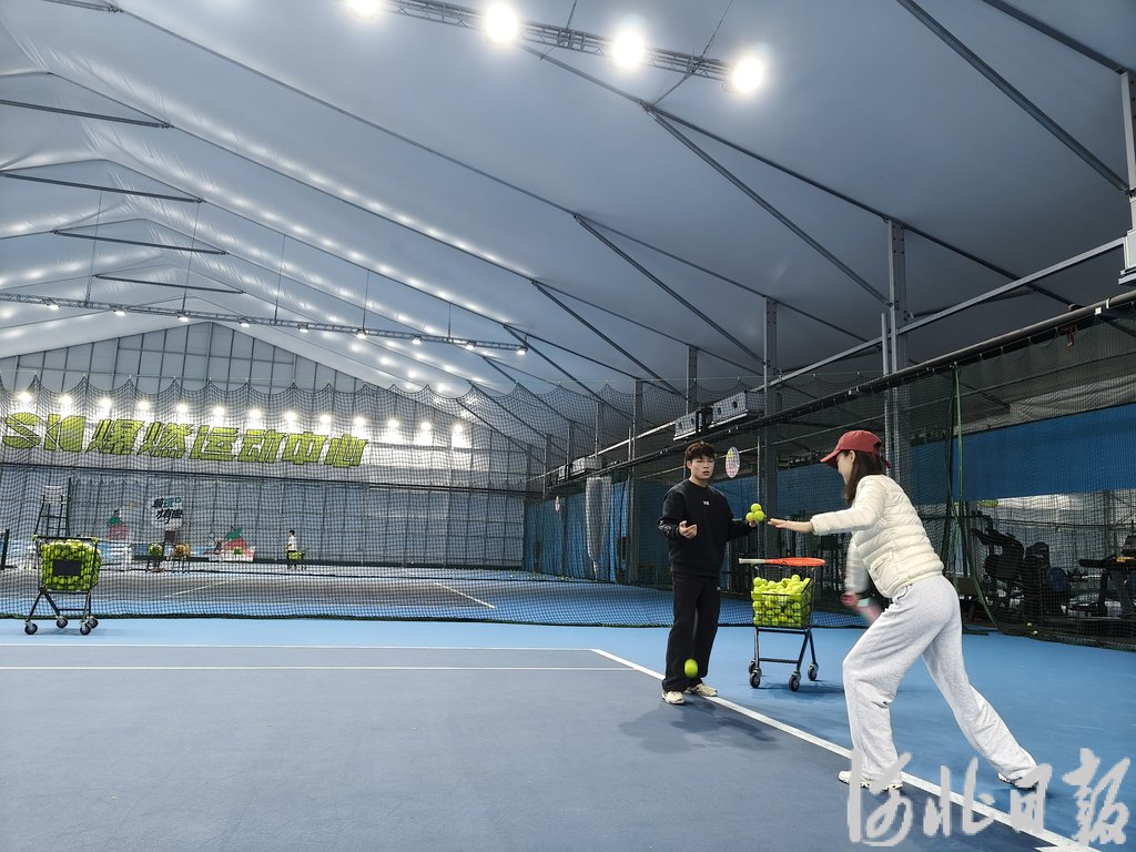11月6日,市民(右)在廊坊SK爆燃运动中心学习网球。 河北日报记者 宋平摄
