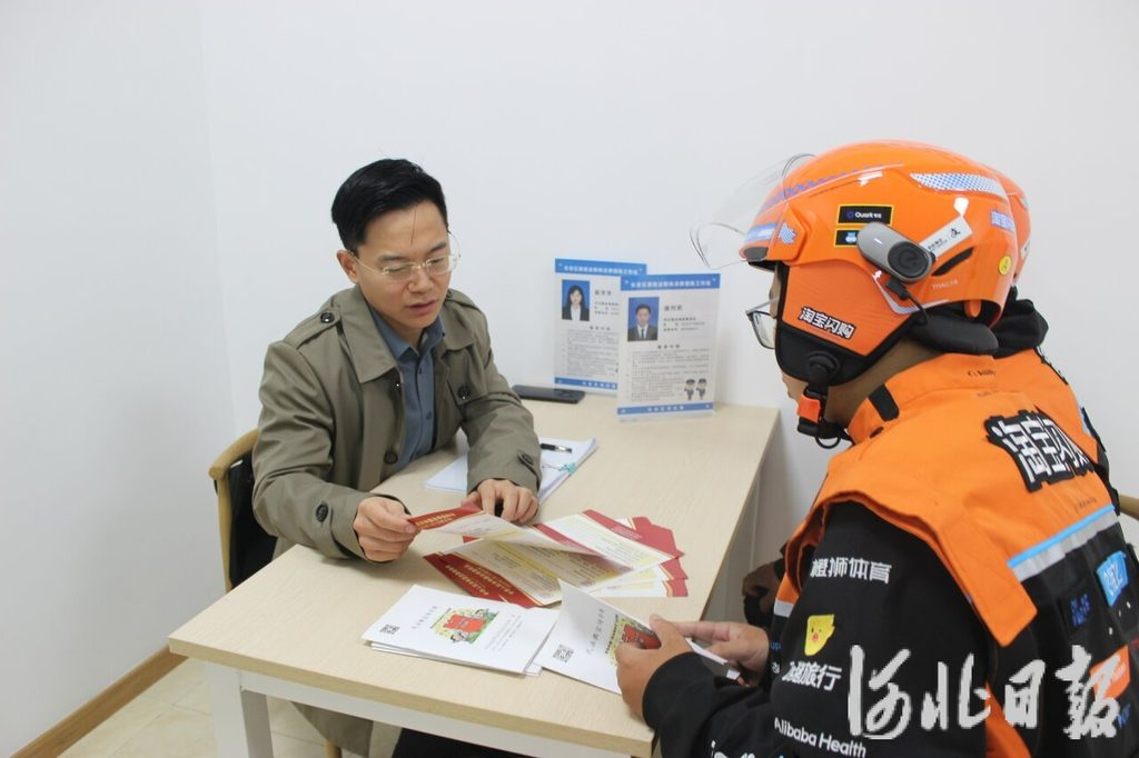 10月22日上午,记者走进石家庄市长安区新就业群体党群服务中心。大厅一角,“新就业群体法律援助工作站”的标识格外醒目。