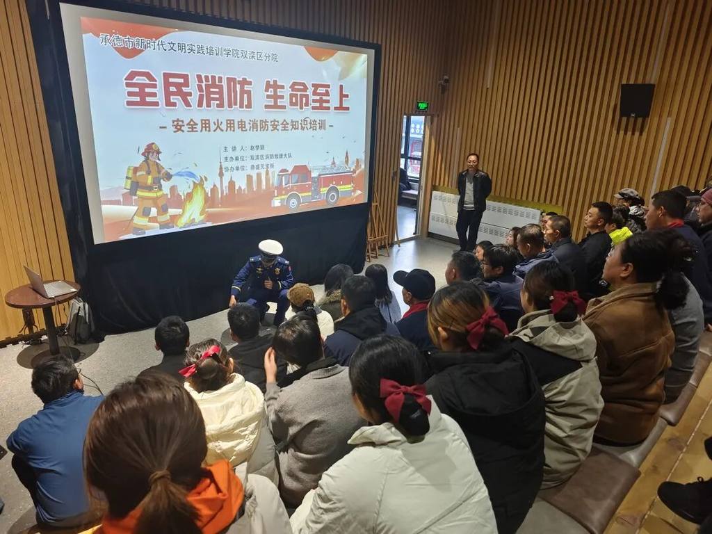 河北日报客户端讯(刘寅)11月9日,承德市新时代文明实践培训学院双滦区分院组织开展“全民消防 安全至上”安全用火用电消防安全知识培训,双滦区消防救援大队走进鼎盛王朝元宝街,为街区餐饮、零售等各类经营主体的百余位从业人员开展“理论+实操”沉浸式消防培训。