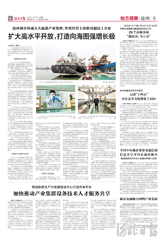 沧州初步形成五大临港产业集群,外贸经营主体数量超过1万家