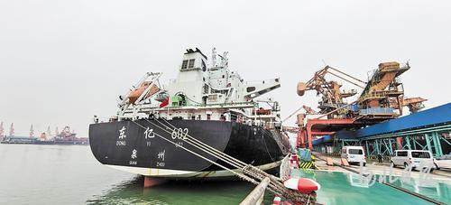 10月23日,在黄骅港煤炭港区码头,货船正在进行装船作业。戴绍志摄