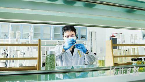 11月12日,沧州·渤海新区南开大学绿色化工研究院工作人员进行产品检测。高宁摄