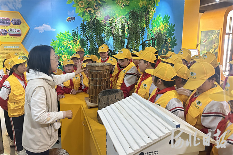 启动仪式后,参会嘉宾实地参观赞皇县酸枣产业展览馆及研学教育基地,交流生态保护与产业融合经验。青少年走进河北省蜜蜂博物馆探索昆虫奥秘,并在嶂石岩国家地质公园开启研学之旅。林草专家现场讲解嶂石岩地质地貌与植物生态知识,美术老师带领孩子们开展树叶拓印创意手绘。看着亲手制作的“自然艺术品”,孩子们脸上洋溢着成就感,在实践中深化了对自然的热爱与保护意识。
